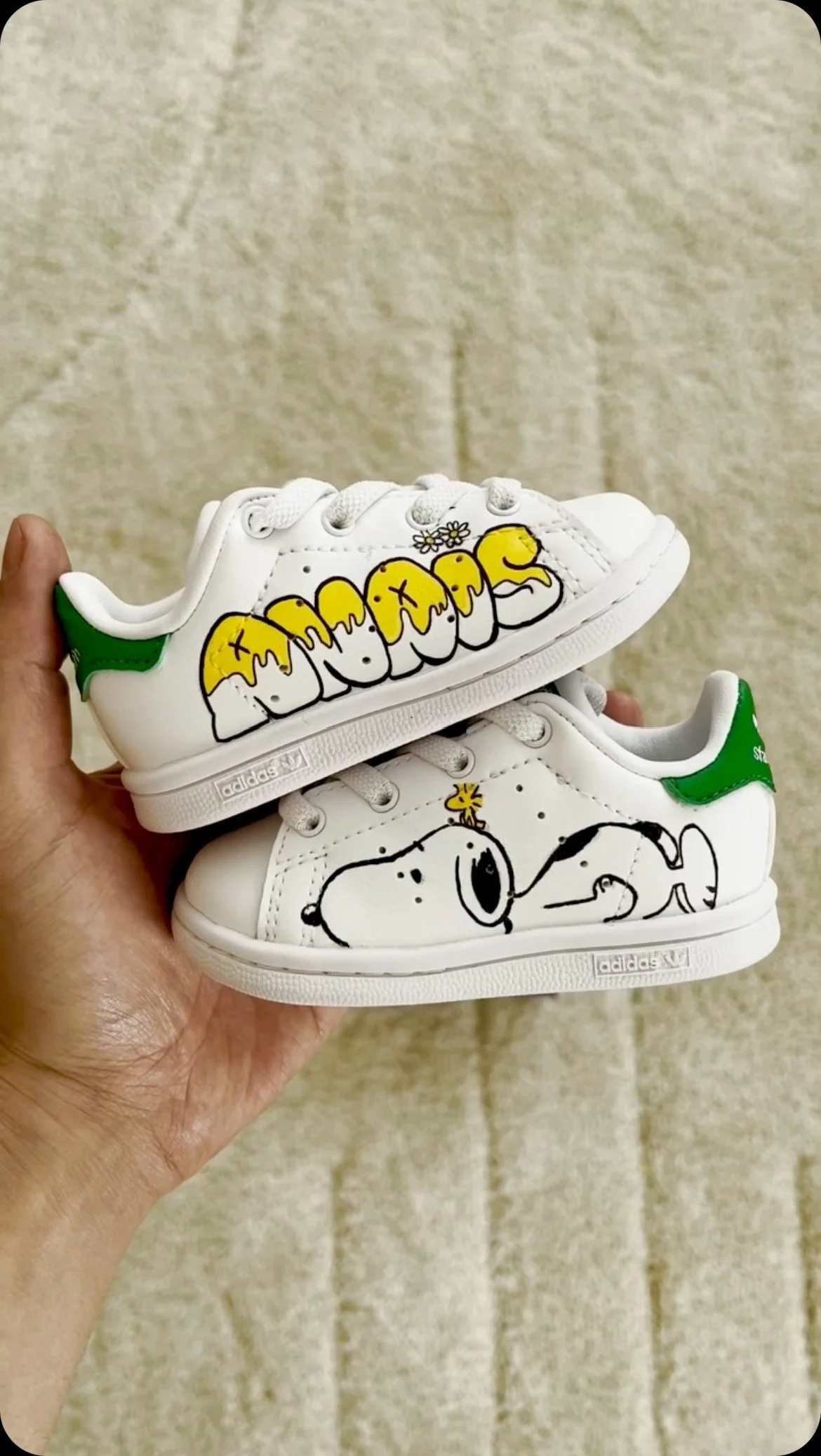 Offrez à vos petits une façon amusante et originale d'exprimer leur style avec nos Stan Smith customisées. Avec Petit Walcoeur, chaque pas est une aventure colorée et pleine de personnalité.